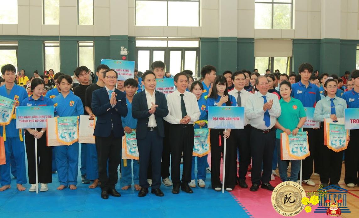 Buổi lễ khai mạc vinh dự đón tiếp sự hiện diện của các vị lãnh đạo cấp cao, thể hiện sự quan tâm sâu sắc của các ban ngành đối với phong trào võ thuật. Đến dự lễ khai mạc có đại diện Thành ủy TP.HCM, Ban lãnh đạo Sở Giáo dục và Đào tạo, cùng Ban lãnh đạo Liên đoàn Vovinam TP.HCM. Đặc biệt, sự kiện còn có sự tham dự của phu nhân của Cố Võ sư Sáng tổ Nguyễn Lộc, mang đến niềm xúc động và khích lệ to lớn cho các võ sinh trẻ. Bên cạnh đó, các nhà tài trợ và đông đảo khách mời cũng đã đến chung vui, cổ vũ cho sự thành công của giải đấu.
