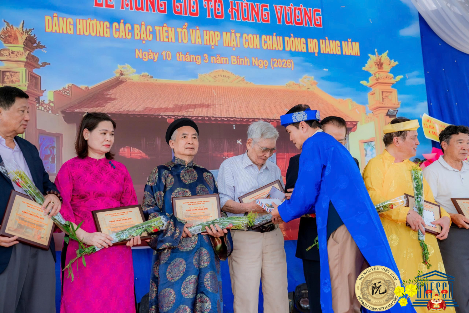 Trong không khí trang nghiêm và đậm đà bản sắc văn hóa truyền thống nhân dịp Nhà Thờ Vọng Họ Nguyễn Việt Nam tổ chức ngày gặp mặt tại lễ giỗ tổ Hùng Vương (10/03 A6L - Bính Ngọ), hội đồng Dòng họ Nguyễn Việt Nam vừa qua đã tổ chức thành công đại lễ tôn vinh và truy tặng bảng vàng công đức tại không gian nhà thờ vọng. Đây là một sự kiện văn hóa mang ý nghĩa tâm linh sâu sắc, nhằm tri ân và ghi nhận những cống hiến to lớn của các cá nhân, đại biểu tiêu biểu đối với sự nghiệp xây dựng, bảo tồn di sản và phát triển mạng lưới dòng tộc.